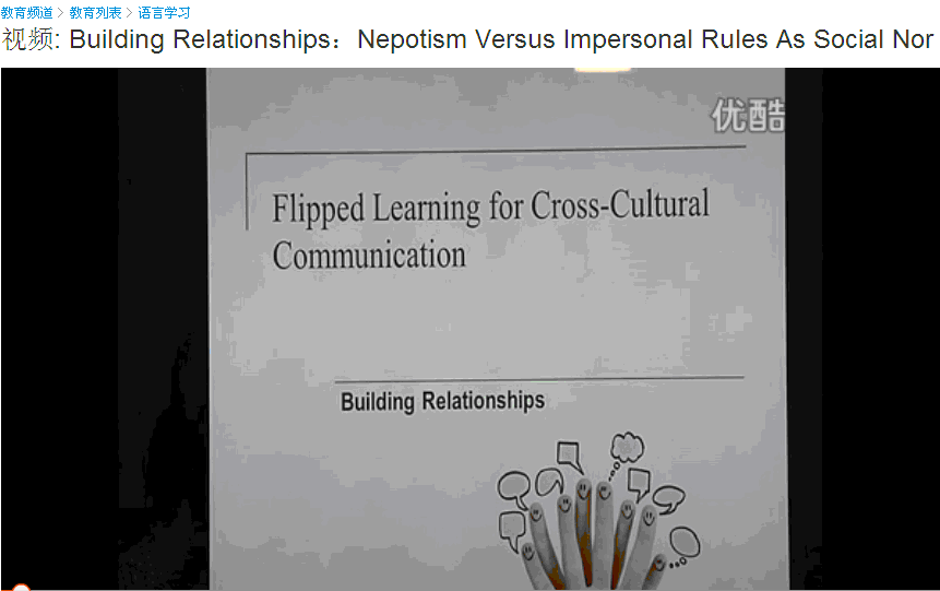 英语专业《跨文化交际》课程的微视频,用于翻转课堂教学。这是第一个专题,讨论东西方人际关系的差异。